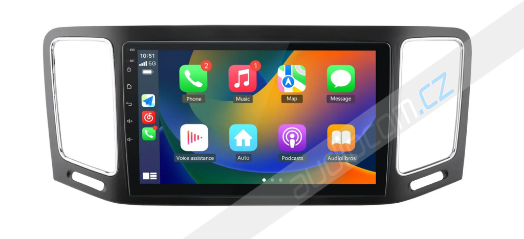 Bezmechanikové 2DIN autorádio s Apple Carplay / Android Auto pro obytné vozy Fiat Ducato, podpora navigací Google Maps, Waze, Sygic, 6,8" kapacitní display, kvalitní FM + DAB tuner, přední i zadní USB vstup, přední slot na SD karty, Bluetooth handsfree a audio streaming, vstup pro parkovací kameru, české menu