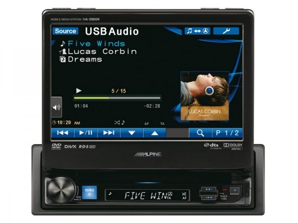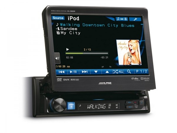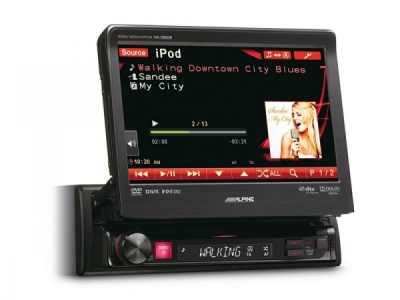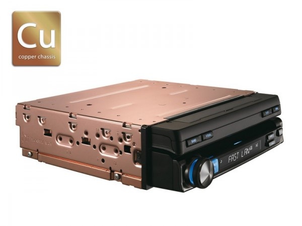 1 DIN multimediální jednotka s výsuvným 7" monitorem s WVG dotykovým displejem, podporuje iPod/iPhone, měnitelné podsvětlení tlačítek, odnímatelný čelní panel