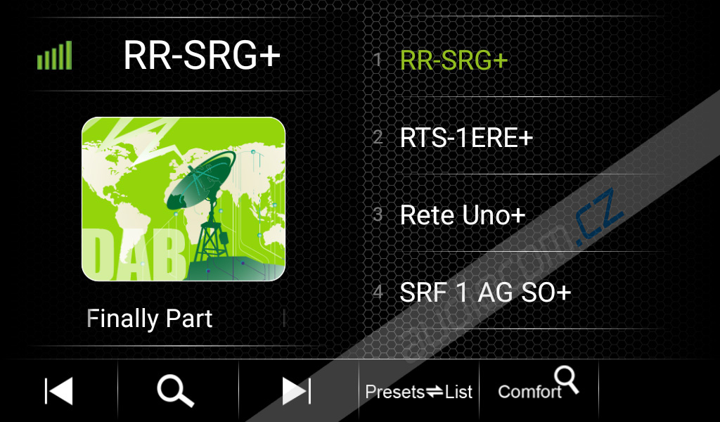 - DAB+ tuner s funkcemi MOT Slideshow, seznam stanic a DLS text
