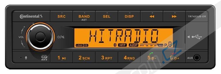 Profesionální autorádio, podpora MP3/WMA, přední USB vstup, zadní AUX vstup, Bluetooth handsfree a streaming hudby, oranžové podsvícení, kvalitní FM tuner CONTINENTAL