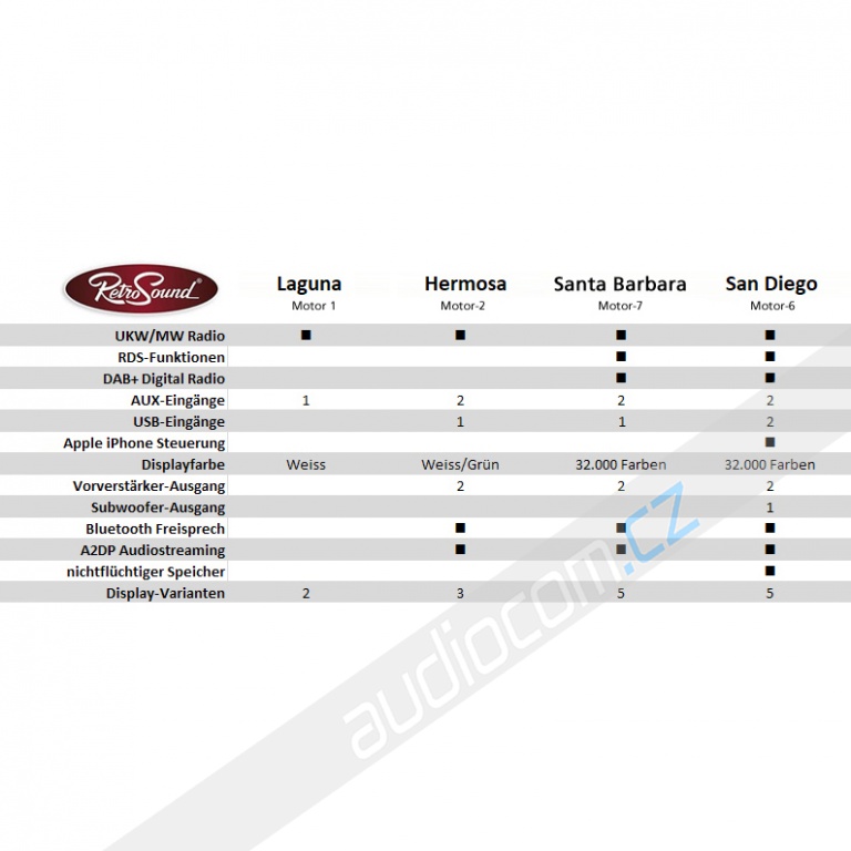 - Kompatibilní se všemi RetroSound předními panely a ovládacími tlačítky