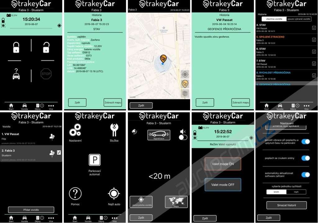 • upozornění na ztrátu komunikace - v případě výpadku nebo zarušení sítě GPS/GSM budete informováni
