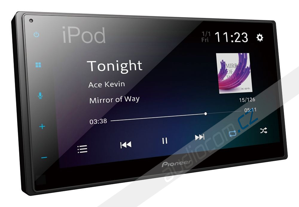 6,8" kapacitní dotyková obrazovka, Apple CarPlay, Android Auto, podpora navigace Waze / Google Maps, Spotify, HDMI, zadní USB / AUX, Bluetooth Parrot, Full HD video, 3X RCA výstup, čeština